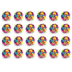 The rainbow ball set contains 24 balls made up of different coloured plastic rings that are connected. Thanks to their special shape, these fun balls bounce all over the place. The intertwined shape also feels great in the hand. To catch these out-of-control balls, a quick reaction and good hand-eye coordination is required.