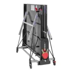 The Sponeta “S 5-72 i / S 5-73 i” table tennis table is a popular table for indoor use. With its 22-mm-thick, multi-coated chipboard top, the table is exceptionally robust and suitable for competitive games. The table tennis table also has a 50-mm-wide frame profile and a compact base with square tubing which makes it very sturdy. Thanks to the height adjustment on the outside legs, the table adjusts to unevenness on the floor of up to 30 mm – the “S 5-72 i / S 5-73 i” table will always stand securely.