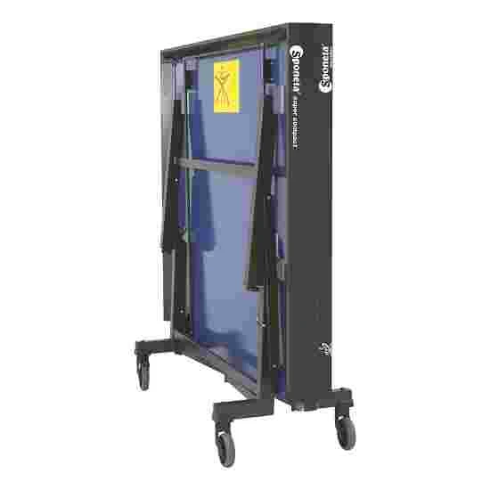The Sponeta “S 8-36 / S 8-37” table tennis table is a robust competition table and conforms to all ITTF standards. Its 25-mm-thick chipboard top is multi-layered and firmly fixed onto the super-compact base frame. The advantage of the fully automatic base frame is that one half of the table can always be folded down or folded up independently of the other half of the table. This means that the table tennis table is quickly ready to use. With its 4 rubberised wheels, the competition table can be easily moved to the desired location. The outermost legs of the Sponeta “S 8-36 / S 8-37” table tennis table are height-adjustable, meaning that uneven surfaces of up to 30 mm can be evened out.